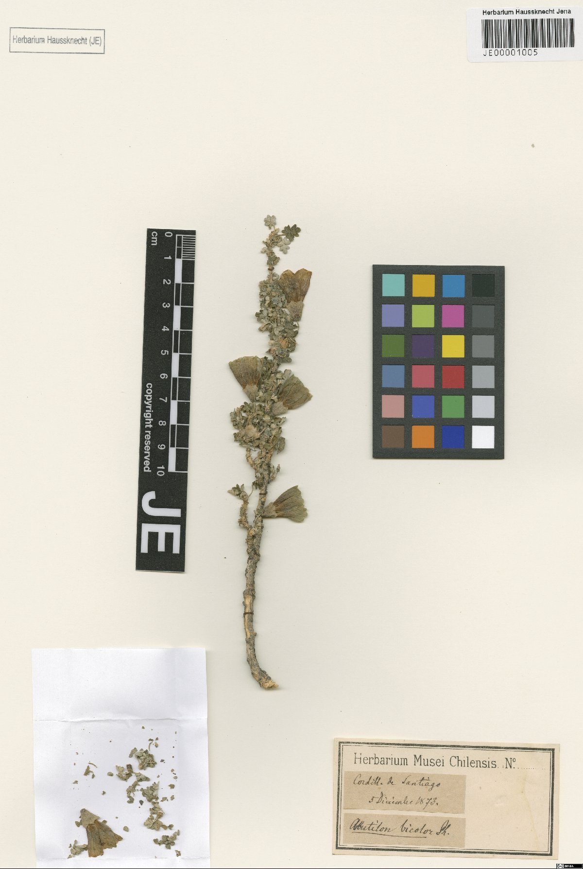 | https://je.jacq.org/JE00001005 | Abutilon bicolor Phil. ex K. Schum. |
